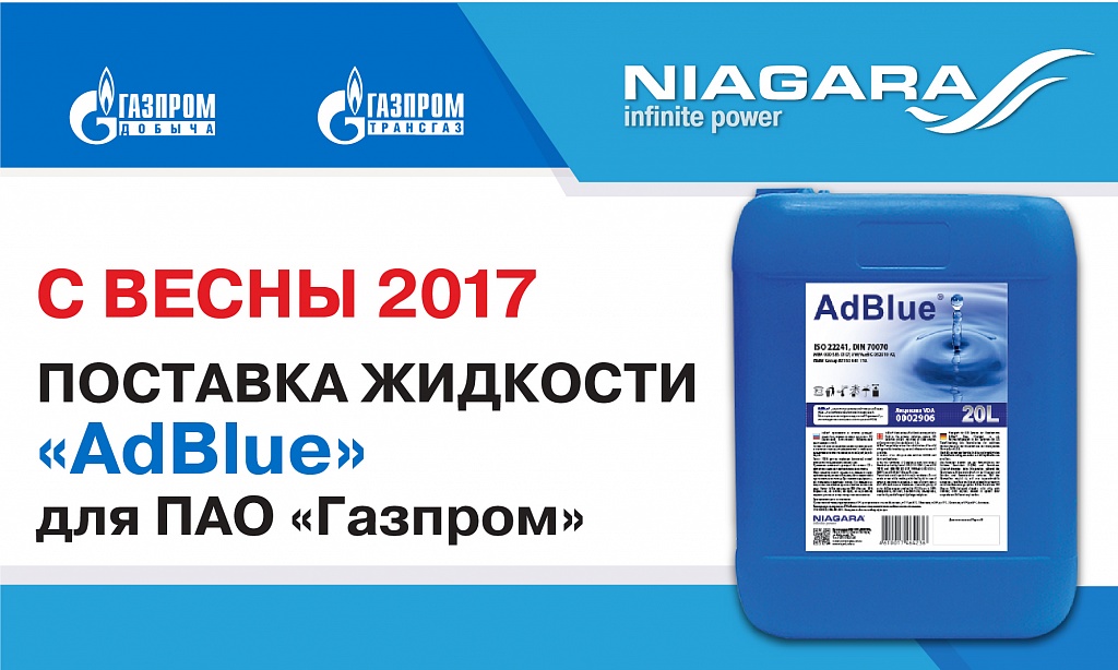 Компания «Ниагара поставляет» «Жидкость AdBlue» на ПАО «ГАЗПРОМ»