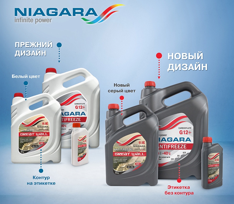 Выпуск готовой продукции торговой марки «Ниагара» и «Полярный круг», в обновленной таре, стартовал с охлаждающих жидкостей 5 кг, 10 кг.