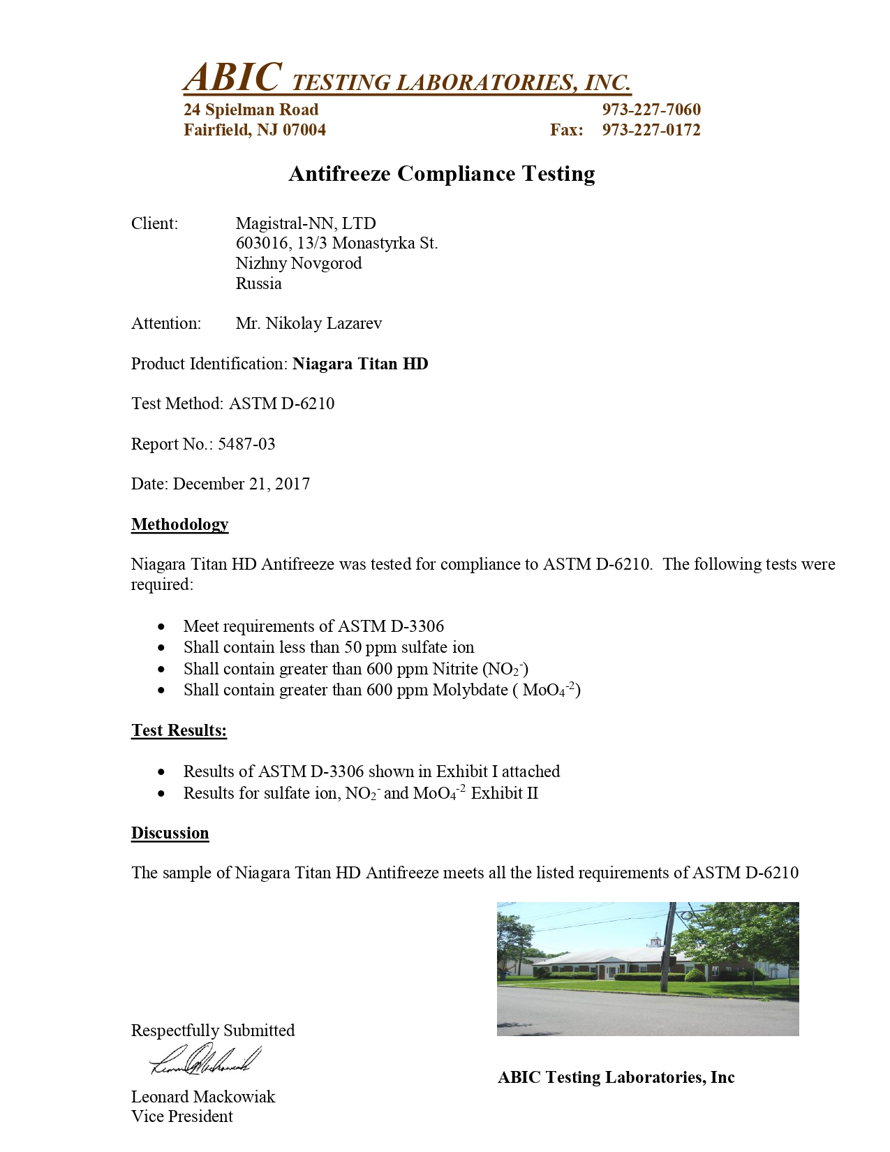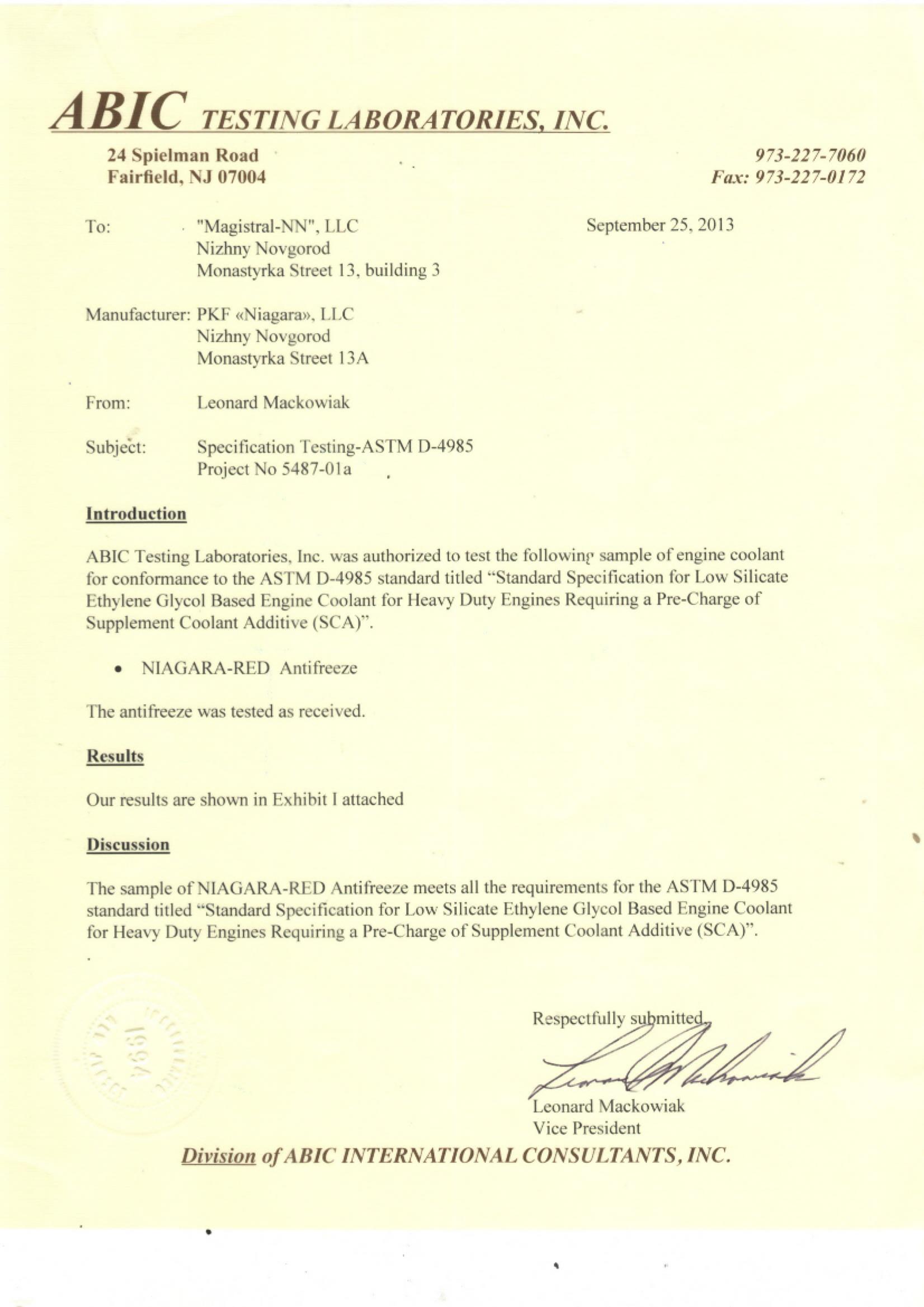 СЕРТИФИКАТ NIAGARA TITAN HD ASTM D-6210