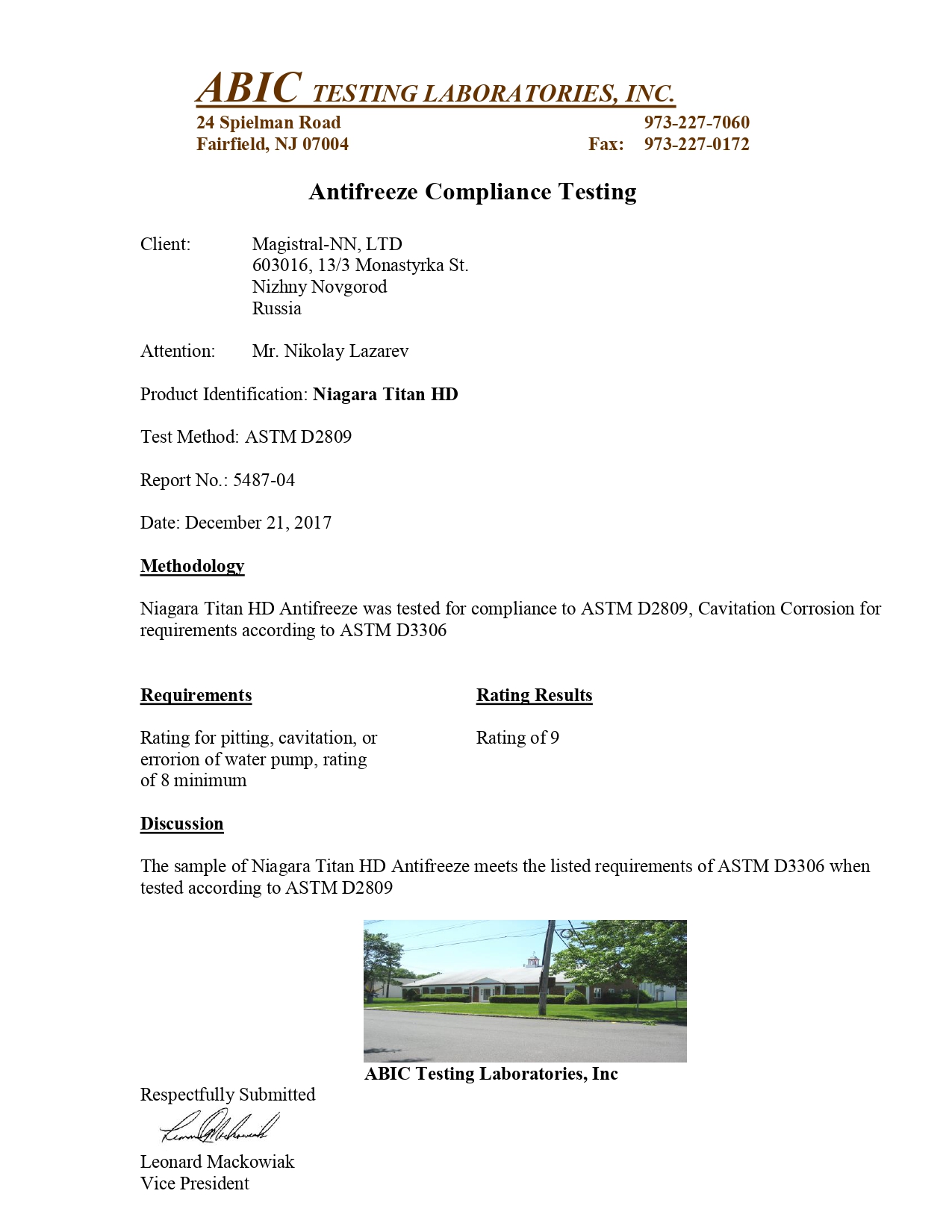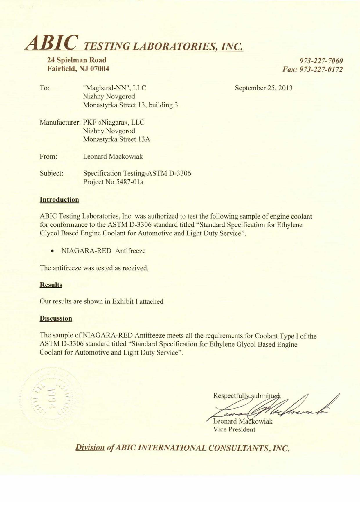 СЕРТИФИКАТ NIAGARA TITAN HD ASTM D2809